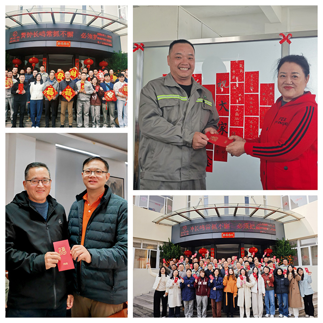 歡樂氛圍里,王董事長、張總親自為大家派發(fā)開工利是,這小小的利是承載著美好寓意,象征新一年的好兆頭,期許大家在蛇年拼搏奮進,助力公司發(fā)展再上新臺階。