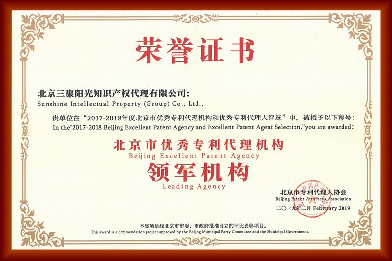 · 獲評 “2019-2020年度北京市優(yōu)秀專利代理機(jī)構(gòu)創(chuàng)新機(jī)構(gòu)”
