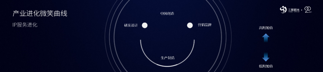 我們也逐漸從中國制造轉變?yōu)橹袊鴦?chuàng)造,中國產(chǎn)業(yè)進化微笑曲線也正是知識產(chǎn)權行業(yè)的服務進化之路。