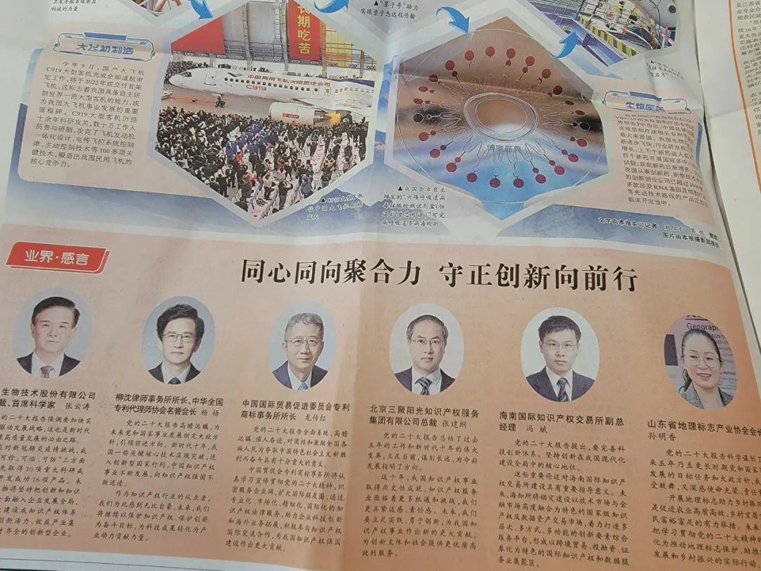 《中國(guó)知識(shí)產(chǎn)權(quán)報(bào)》刊登三聚陽光總裁張建綱對(duì)二十大報(bào)告感言