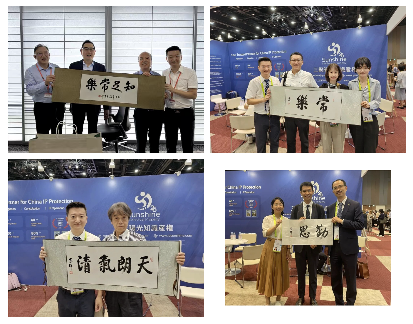 多位國(guó)際同行在參觀三聚陽(yáng)光展位時(shí)紛紛表示,近年來(lái)中國(guó)知識(shí)產(chǎn)權(quán)服務(wù)機(jī)構(gòu)的專業(yè)能力顯著提升,尤其在復(fù)雜案件代理和國(guó)際布局支持方面已具備全球競(jìng)爭(zhēng)力。這既是對(duì)三聚陽(yáng)光的認(rèn)可,也激勵(lì)我們繼續(xù)加強(qiáng)國(guó)際交流,不斷提升服務(wù)水準(zhǔn)。  為進(jìn)一步增進(jìn)文化交流、傳遞友好情誼,三聚陽(yáng)光副總裁高東輝現(xiàn)場(chǎng)揮毫潑墨,以中國(guó)傳統(tǒng)書(shū)法書(shū)寫“天朗氣清”“知足常樂(lè)”等寓意美好的詞句,贈(zèng)予來(lái)訪嘉賓,贏得了國(guó)際同行的由衷贊嘆。這也成為本次展會(huì)中一道獨(dú)具韻味的文化風(fēng)景線,生動(dòng)詮釋了知識(shí)產(chǎn)權(quán)領(lǐng)域跨越國(guó)界的理解、尊重與合作精神。  此次AIPPI大會(huì)上,許多曾在9月北京中國(guó)知識(shí)產(chǎn)權(quán)年會(huì)(CIPAC 2025)上相識(shí)、交流甚至深入探討合作的同行與伙伴,跨越地理距離,在橫濱的會(huì)場(chǎng)再次相遇。一句問(wèn)候、一個(gè)微笑、一次握手,都承載著專業(yè)認(rèn)同與彼此信任的延續(xù)。在北京分享中國(guó)經(jīng)驗(yàn),在橫濱傾聽(tīng)世界聲音,三聚陽(yáng)光團(tuán)隊(duì)在短短數(shù)日內(nèi)連續(xù)亮相兩大重要會(huì)議,在頻繁的對(duì)話與互信中,為中外創(chuàng)新主體搭建起溝通與協(xié)作的橋梁  多年來(lái),三聚陽(yáng)光始終堅(jiān)持“讓企業(yè)創(chuàng)新無(wú)后顧之憂,從中國(guó)到世界”的理念與使命,每年定期組織團(tuán)隊(duì)參加AIPPI、INTA等國(guó)際頂級(jí)行業(yè)會(huì)議,積極融入全球知識(shí)產(chǎn)權(quán)網(wǎng)絡(luò)。這不僅是一次品牌展示之旅,更是一次學(xué)習(xí)、交流與合作的深度實(shí)踐。通過(guò)與國(guó)際同行的持續(xù)對(duì)話,三聚陽(yáng)光不斷汲取全球智慧,優(yōu)化服務(wù)體系,致力于為更多中國(guó)企業(yè)“走出去”提供全球化、高質(zhì)量、一站式的知識(shí)產(chǎn)權(quán)解決方案。