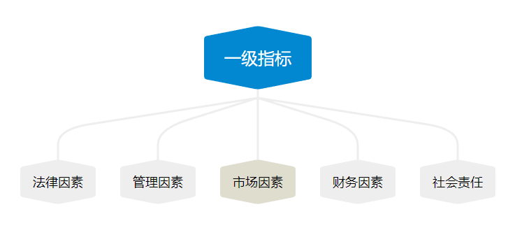 ·一級(jí)指標(biāo):評(píng)價(jià)體系涵蓋法律因素、管理因素、市場(chǎng)因素、財(cái)務(wù)因素、社會(huì)責(zé)任五個(gè)一級(jí)指標(biāo)。
