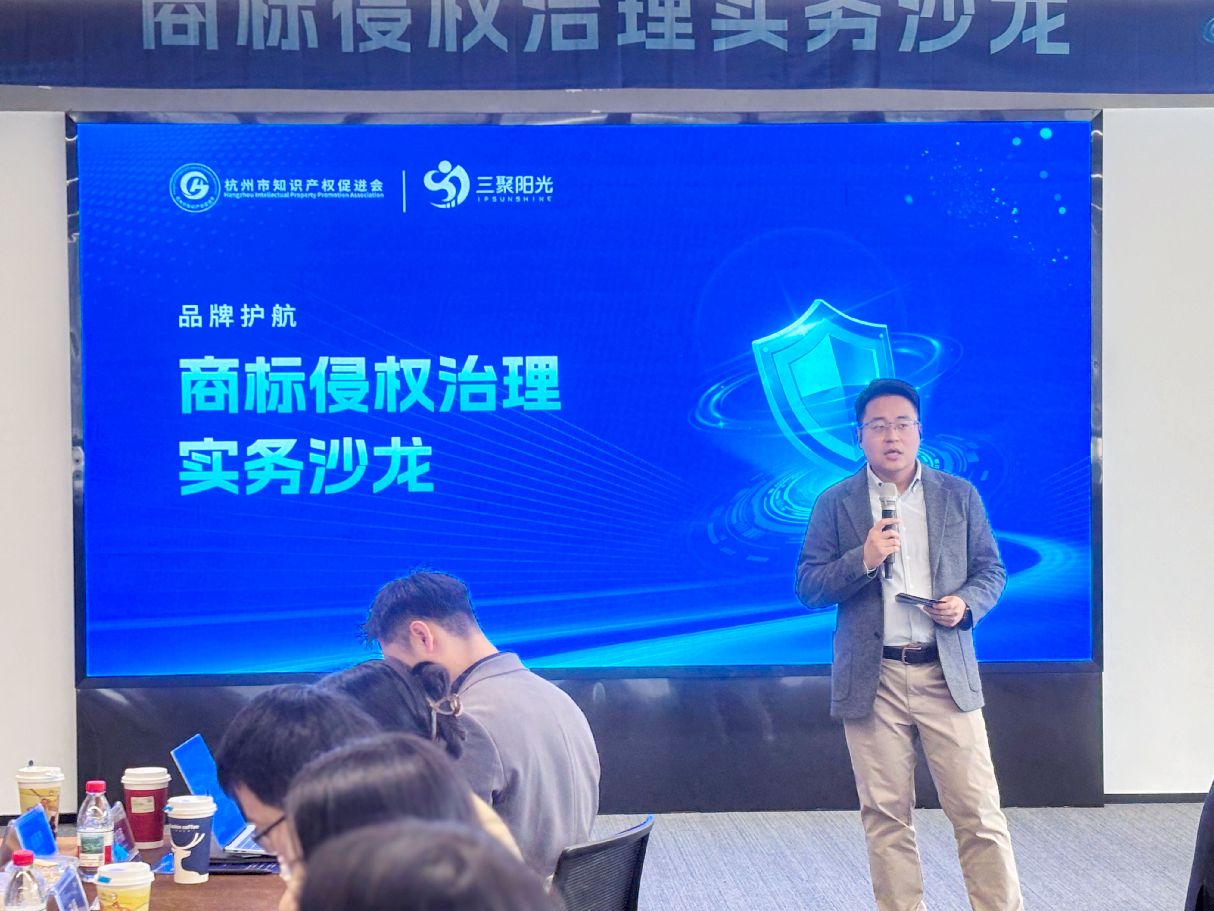 近日,由浙江省知識產權保護中心、杭州高新區(qū)(濱江)市場監(jiān)督管理局指導,杭州市知識產權促進會、浙江省中小企業(yè)協(xié)會知識產權專委會主辦,三聚陽光承辦的“品牌護航 商標侵權治理實務沙龍”在杭州順利舉辦。浙江省知識產權保護中心服務發(fā)展部部長張晉茂,杭州市知識產權促進會秘書長、杭州市知識產權交易服務中心總經理程俊良受邀出席,三聚陽光浙江區(qū)副總經理張鳴主持沙龍。