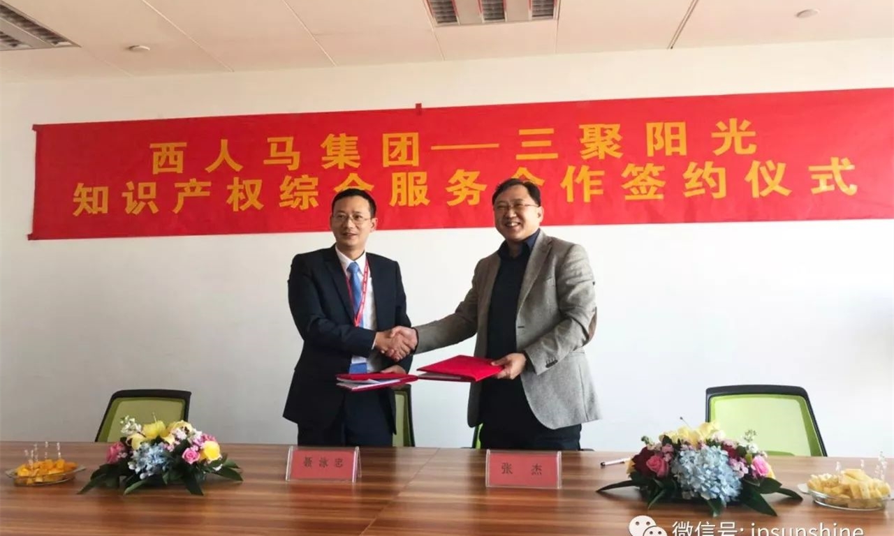 日前,西人馬創(chuàng)始人聶泳忠博士與三聚陽(yáng)光董事長(zhǎng)張杰在廈門西人馬集團(tuán)總部簽署了知識(shí)產(chǎn)權(quán)綜合服務(wù)合作協(xié)議。