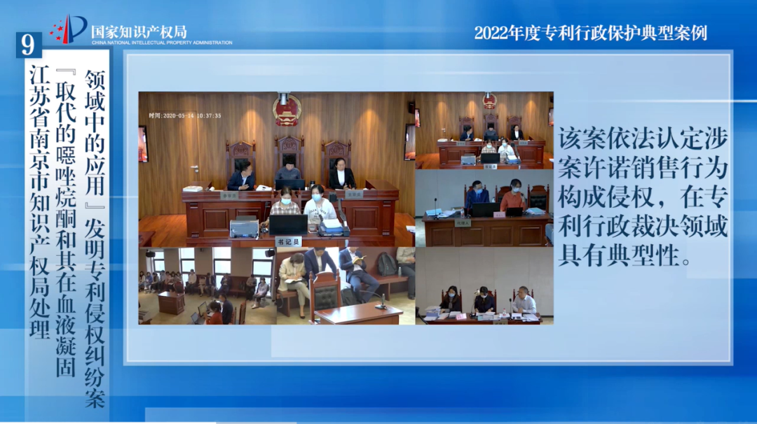 4月25日,國家知識產(chǎn)權(quán)局公布《2022年度專利行政保護(hù)典型案例》,三聚陽光代理的江蘇省南京市知識產(chǎn)權(quán)局處理“取代的噁唑烷酮和其在血液凝固領(lǐng)域中的應(yīng)用”發(fā)明專利侵權(quán)糾紛案”入選。該案還入選了《2022年江蘇省知識產(chǎn)權(quán)十大典型案件》。