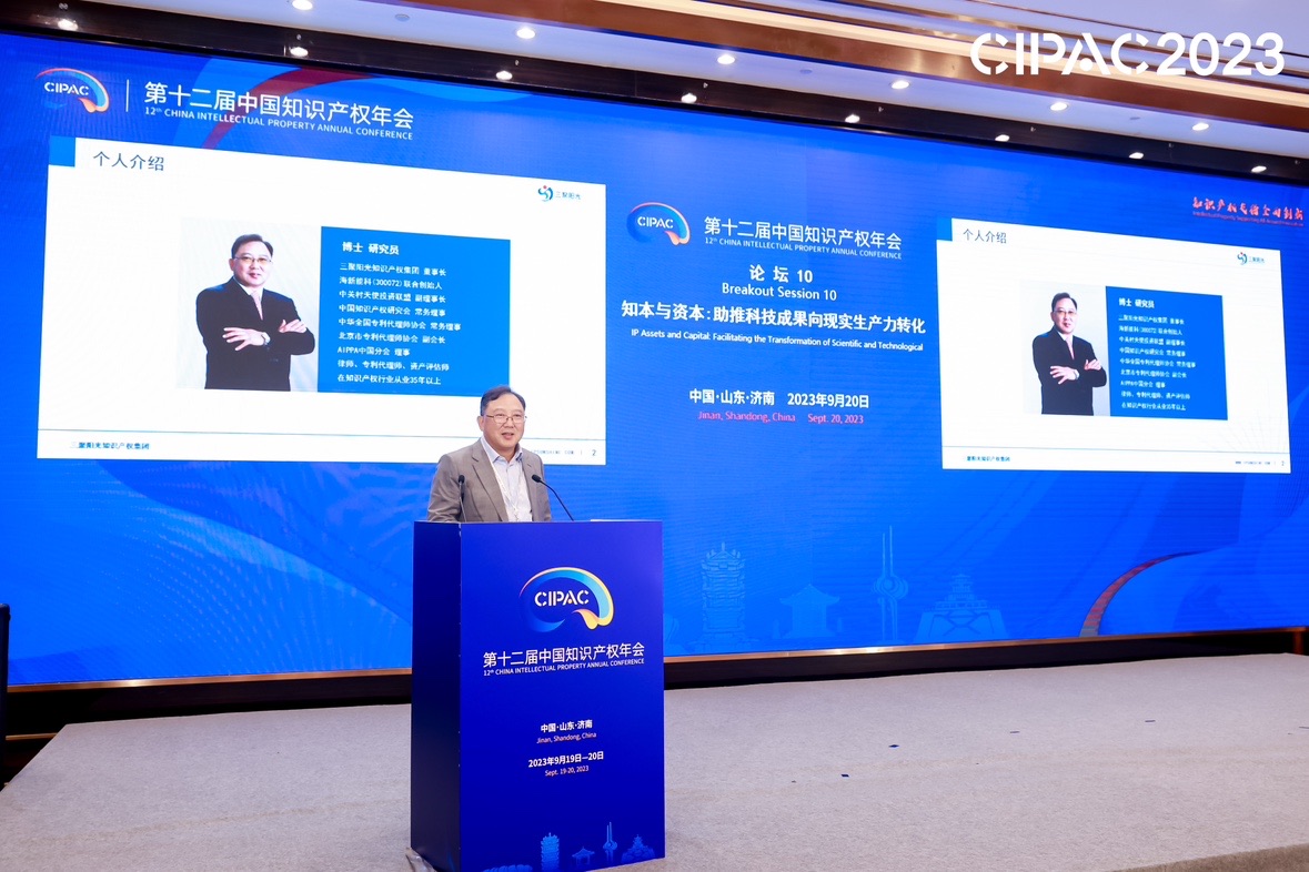 9月20日下午,三聚陽(yáng)光知識(shí)產(chǎn)權(quán)集團(tuán)董事長(zhǎng)張杰 于分論壇10“知本與資本:助推科技成果向現(xiàn)實(shí)生產(chǎn)力轉(zhuǎn)化”,帶來主題為“知識(shí)產(chǎn)權(quán)商業(yè)化戰(zhàn)略與資本市場(chǎng)價(jià)值”的精彩分享,分享對(duì)知識(shí)產(chǎn)權(quán)的深層理解、知識(shí)產(chǎn)權(quán)商業(yè)化戰(zhàn)略、知識(shí)產(chǎn)權(quán)的資本市場(chǎng)價(jià)值等方面的思考。
